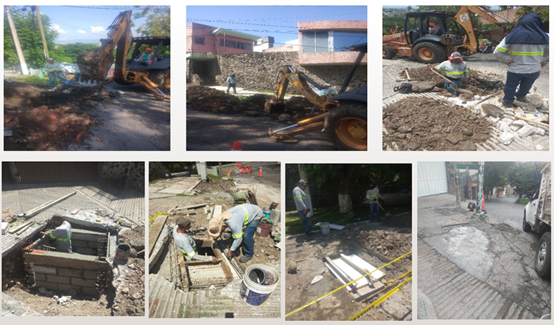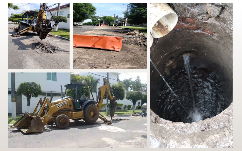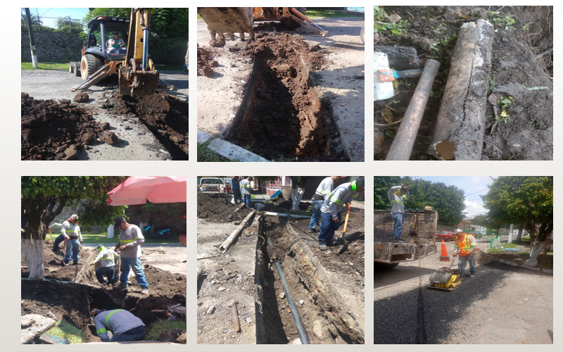 •El día de hoy se la retroexcavadora rompió el último tramo que da la línea del drenaje, hasta el día de mañana 04 de octubre se vera con el tandeo de agua si se detecta alguna otra fuga.
